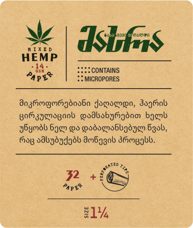 მასრას ქაღალდები დამზადებულია კანაფის ნატურალური ლერწმისგან, ქიმიური მინარევების გარეშე. გამოყენებული აკაციის წებო ხელს უწყობს თანაბარ წვას, რაც მოწევის პროცესს უფრო სასიამოვნოს ხდის.